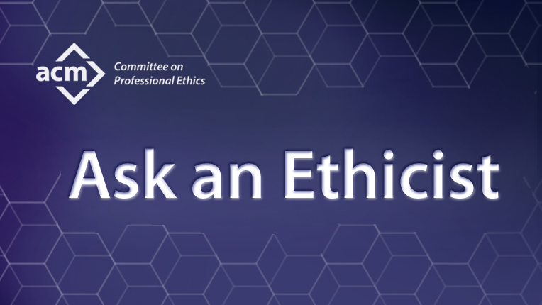 Ask an Ethicist invites ethics questions related to computing or technology. Have an interesting question, puzzle or conundrum? Submit yours via a form, and the ACM Committee on Professional Ethics (COPE) will answer a selection of them on the site.
