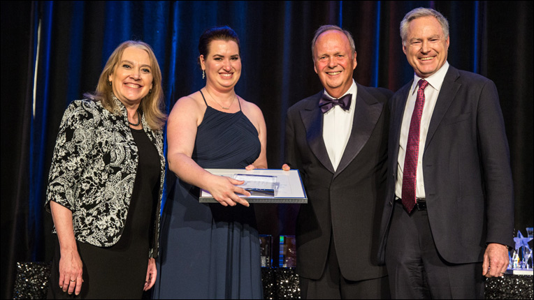 Hopper Award recipient Amanda Randles with Vicki L. Hanson, John White, and Eric Horvitz, Technical Fellow and Managing Director, Microsoft Research