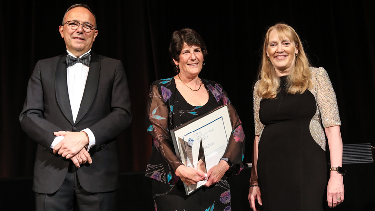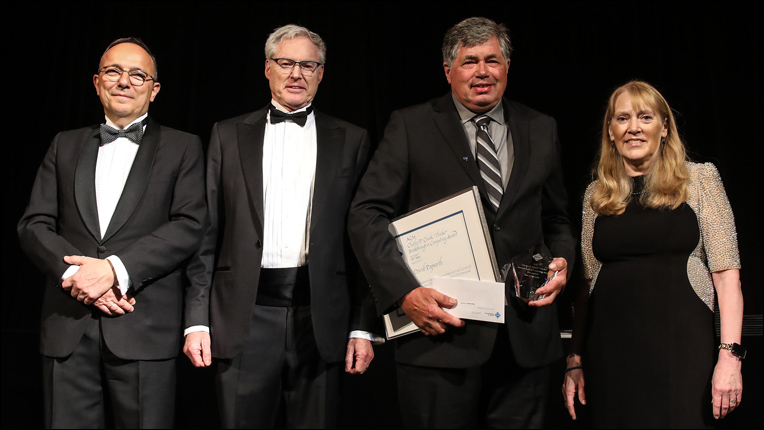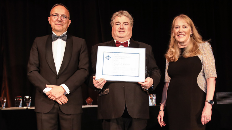 Yannis Ioannidis, Karlstrom Award recipient Michael E. Caspersen, and Vicki L. Hanson