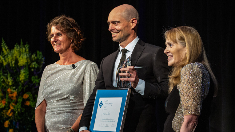 ACM Prize recipient Pieter Abbeel with Gabriele Kotsis and Vicki L. Hanson