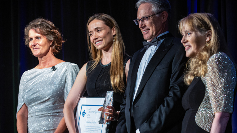Hopper Award recipient Raluca Ada Popa with Gabriele Kotsis, Eric Horvitz, and Vicki L. Hanson