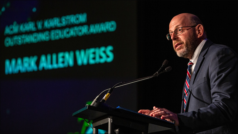 The Karl V. Karlstrom Outstanding Educator Award was presented to Mark Allen Weiss for advancing the art and science of CS education through his textbooks, research, and curriculum design, which have affected thousands of instructors as well as students around the world. Learn more about Weiss' decades-long efforts to make CS studies more viable and open and his guidance of overall CS education in this short video.