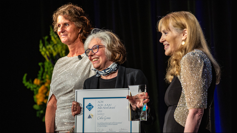 ACM Newell Award recipient Carla Gomes with Gabriele Kotsis and Vicki L. Hanson